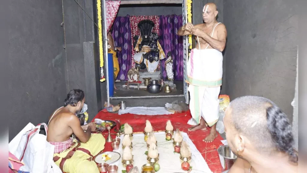 Post these two homams, a mandala abhishekam was performed to Lord Lakshmi Narasimha at the recently inaugurated Prahalada Varada Lakshmi Narasimha Swamy temple in the precincts of Sri Sathya Sai Divyaamritam. The Mandala Pooja has been performed for 41 days at this Holy Narasimha Kshetram of Prahalada Varada Lakshmi Narasimha Swamy temple.