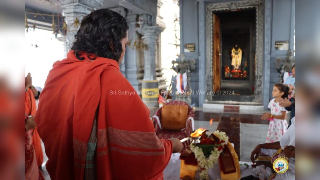 On 4th August, as a part of Abhinandana, a get-together of young selfless minds, Rudrabhisekham, Divya Prasada Seva, Satsang and Gostani Pooja and bathing were performed.
